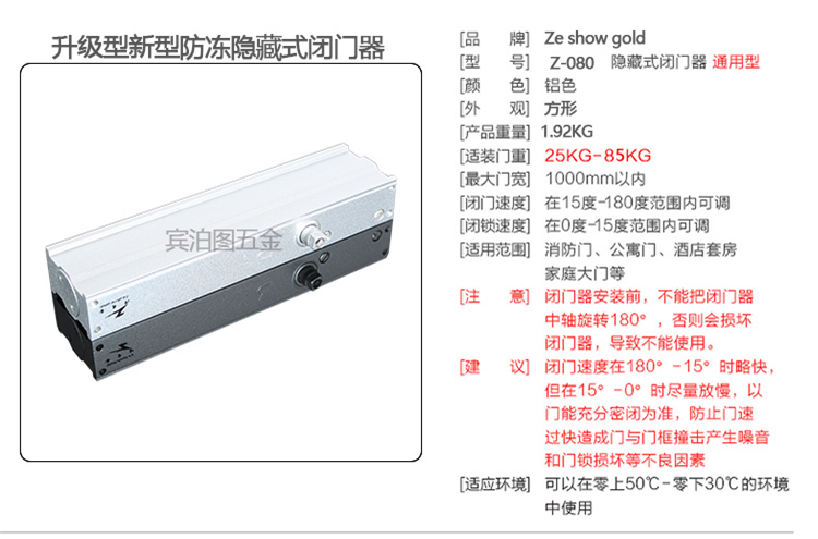 • 商品名称:首力 85KG 自动关门定位暗装隐藏式闭合器(单位:个)
