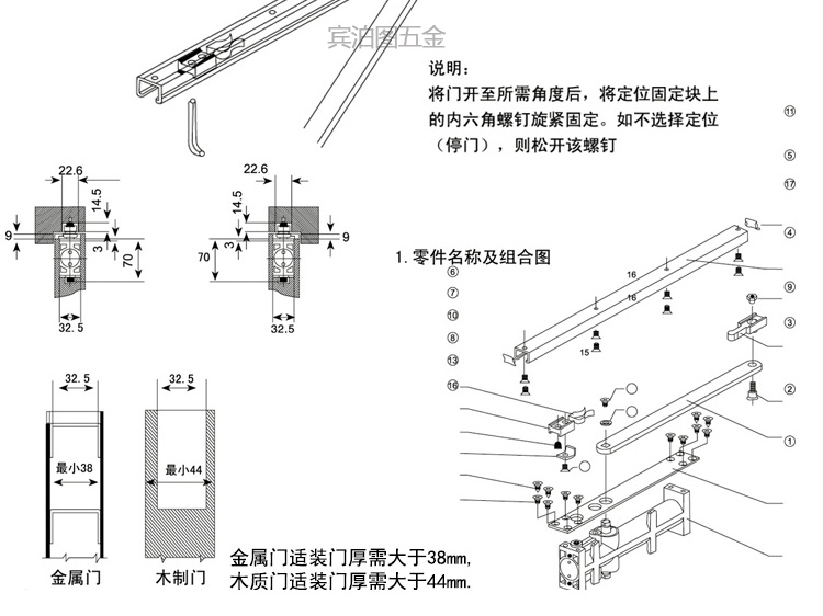 商品名称: 首力 85KG 自动关门定位暗装隐藏式闭合器(单位:个)
