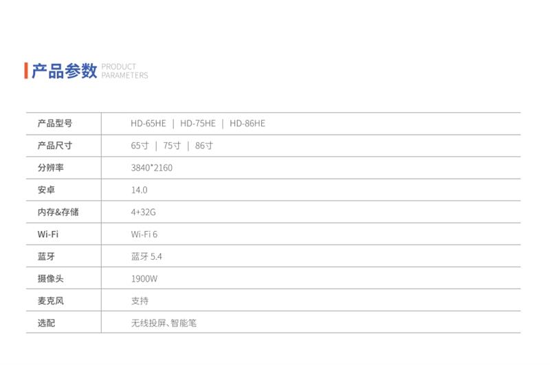 • 商品名称:鸿合/HiteVision HD-86HE 智能交互一体机