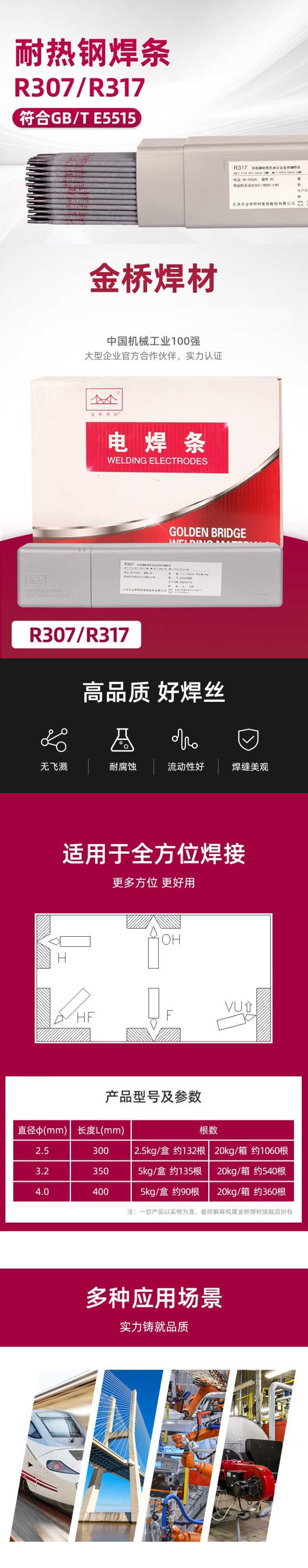 商品名称: 金桥 5.0/20kg-307码/型号R307 耐热电焊条
