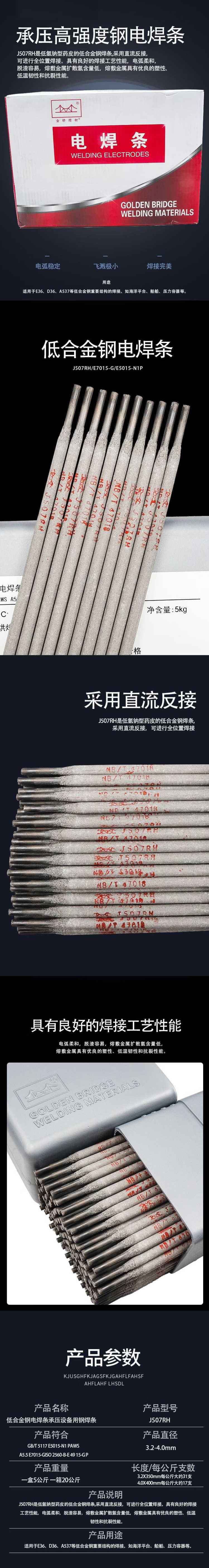 • 商品名称:金桥 J507RH/φ3.2/20kg 桥低氢焊条