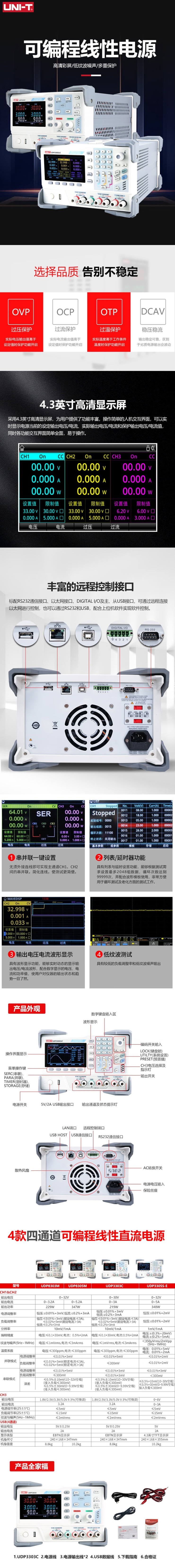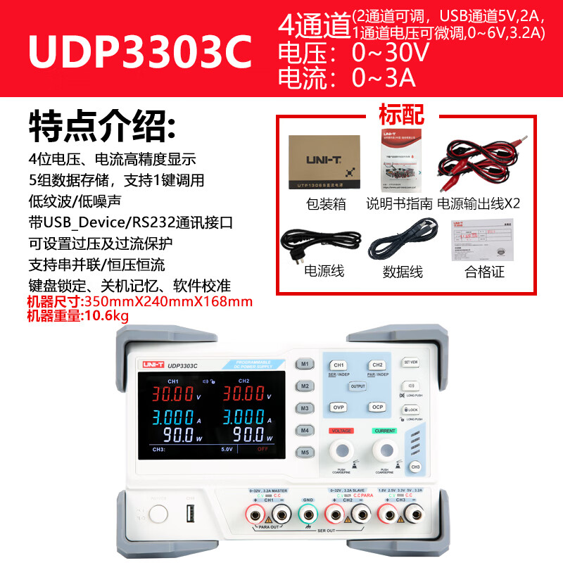 商品名称: 优利德/UNI-T UDP3303C/0-30V/0-3A 可编程线性直流稳压电源UDP3303C