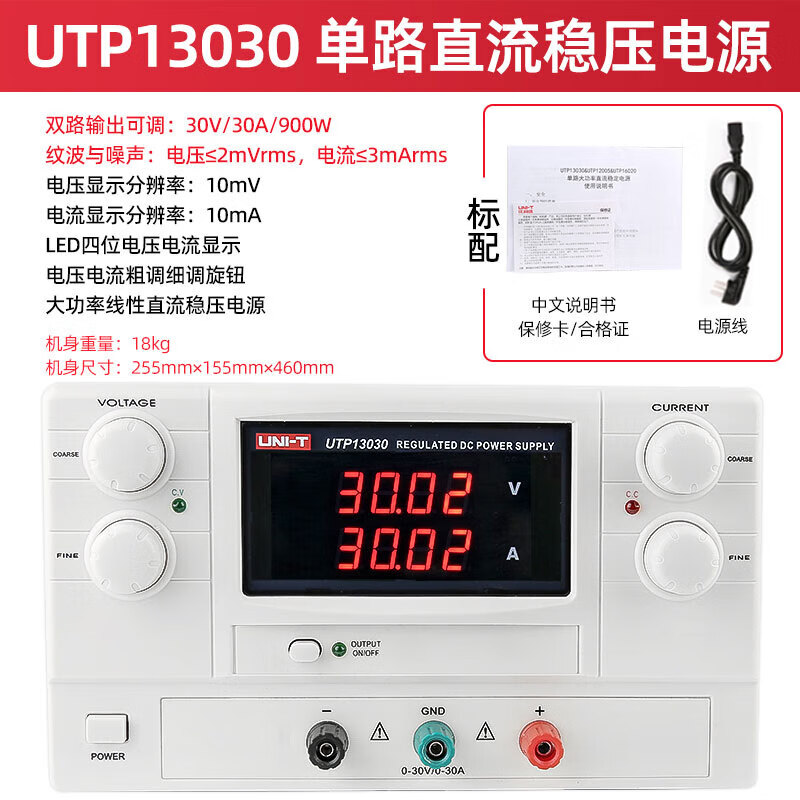 商品名称: 优利德/UNI-T UTP13030 双路大功率线性直流稳压电源