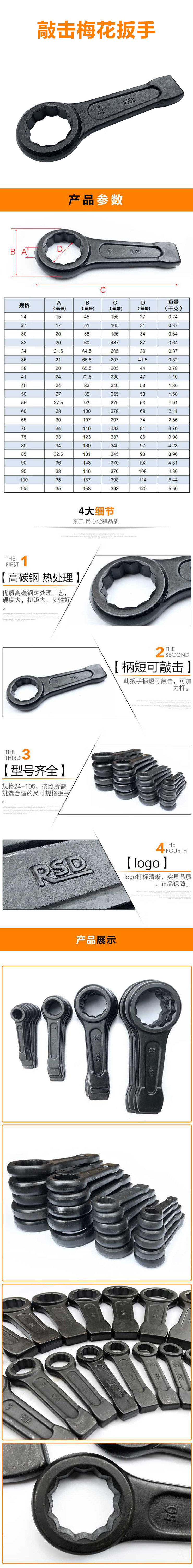 RSD 规格:12角75MM 敲击梅花扳手