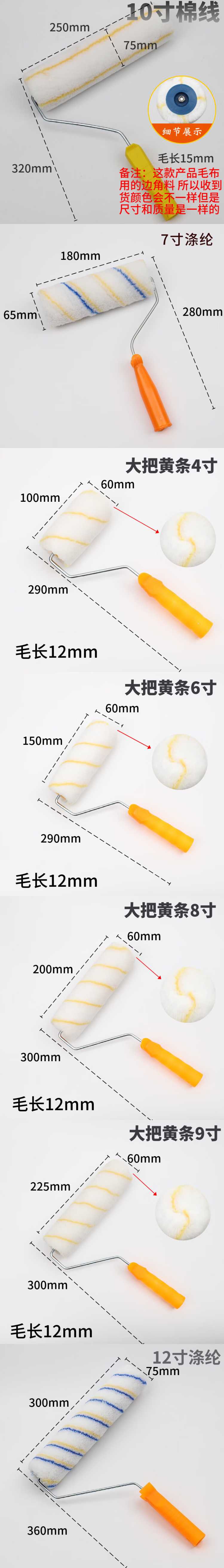 商品名称: 玉达 100-250mm*15-46mm/短毛4-10寸 滚刷 100-250mm*15-46mm/短毛4-10寸