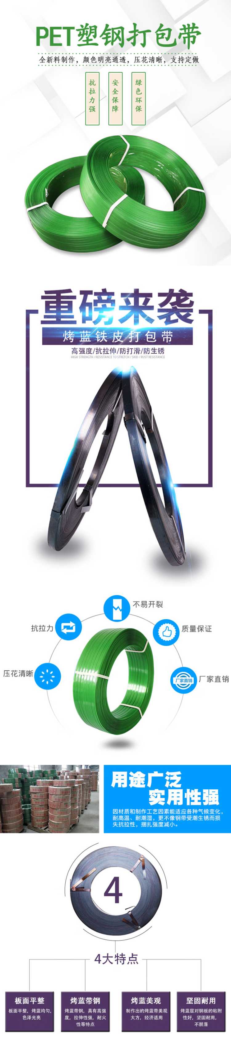 商品名称: 金益 材质:塑钢;宽:19mm;厚:1mm;包装规格:20Kg 打包带 材质:塑钢;宽:19mm;厚:1mm;包装规格:20Kg