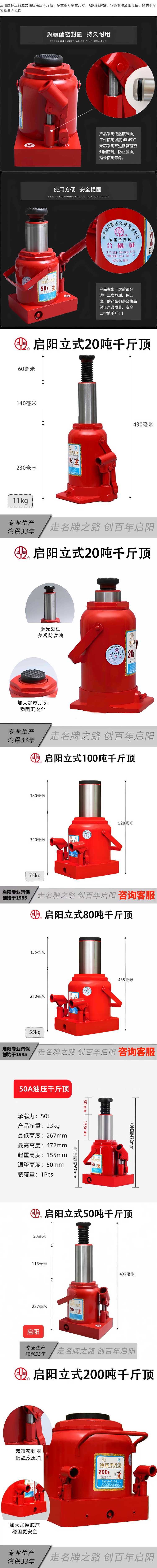 • 商品名称:启阳 起重重量:20T;类型:立式 液压千斤顶 起重重量:20T;类型:立式
