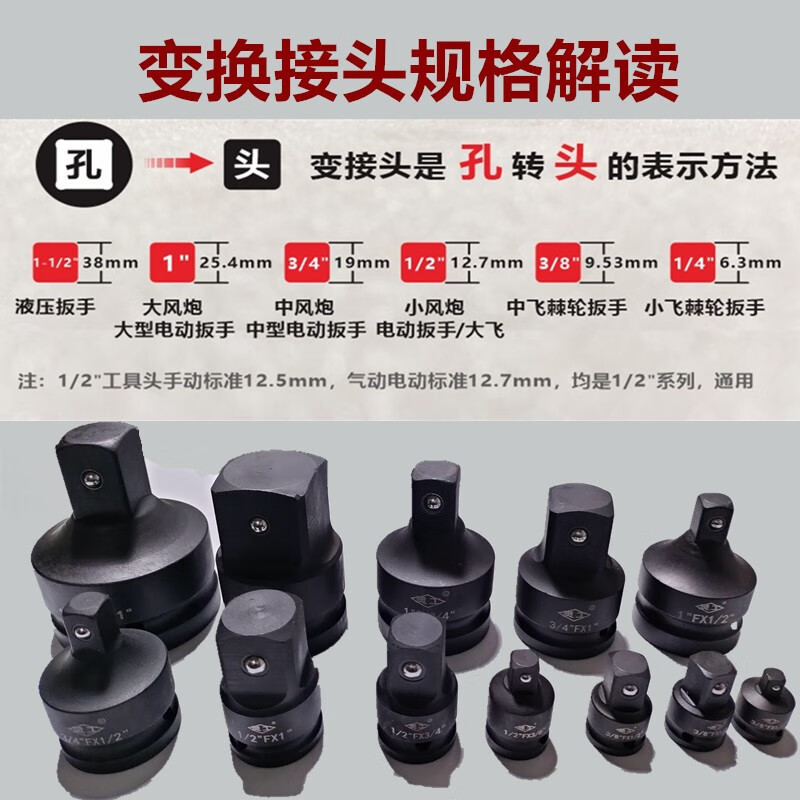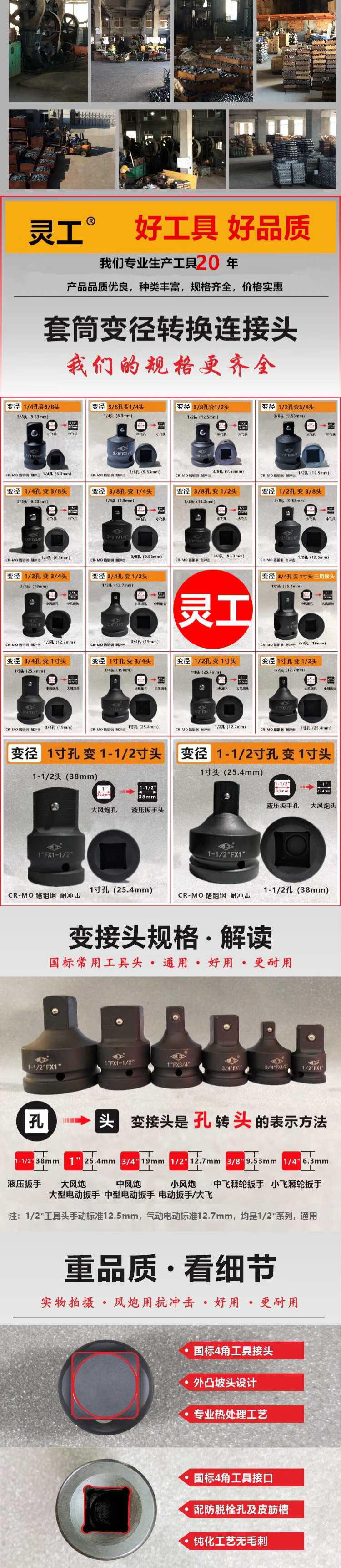 商品名称: 灵工 1/2"方孔X3/8"方头 套筒转接头 1/2"方孔X3/8"方头