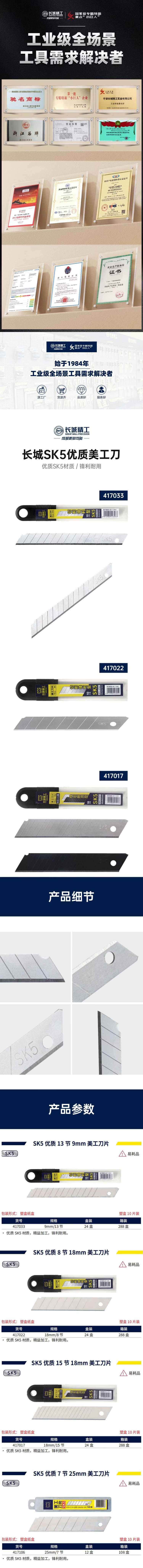 • 商品名称:长城/GREATWALL 10件套8节18*100MM 美工刀刀片 10件套8节18*100MM