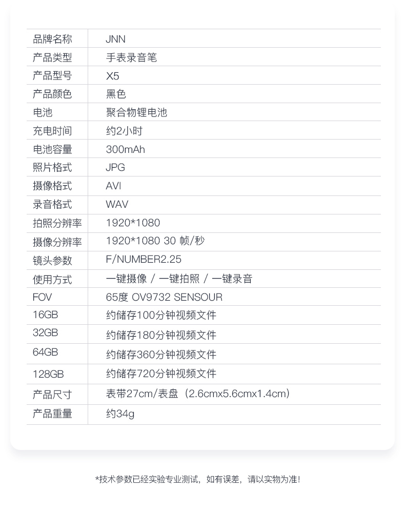 数码通讯  > 电子产品  > 录音笔  >  JNN  >  JNN X5 手表录音笔 64GB