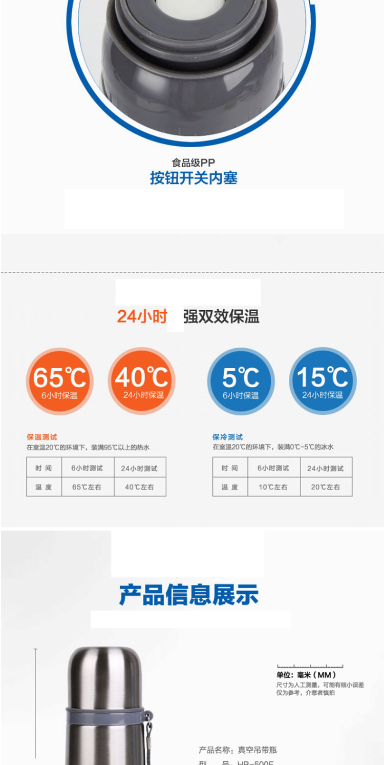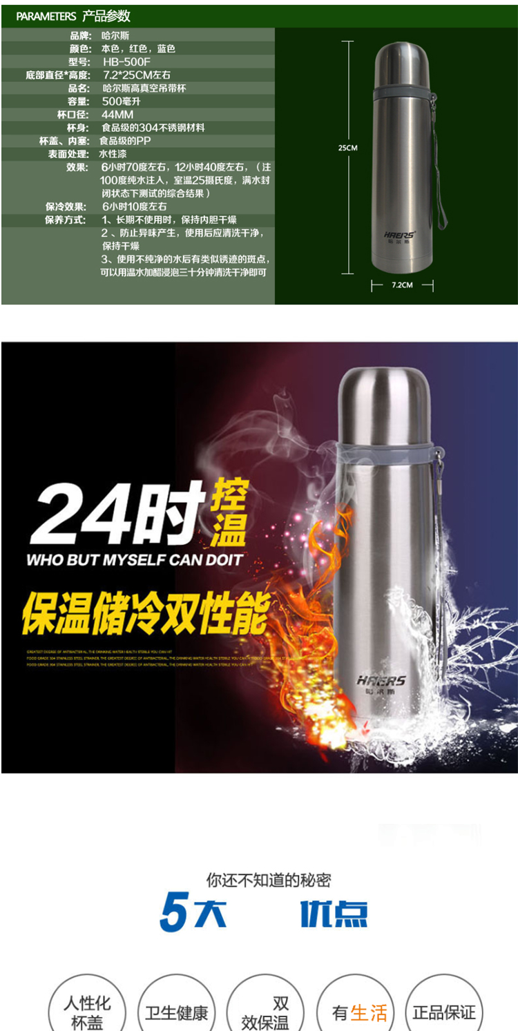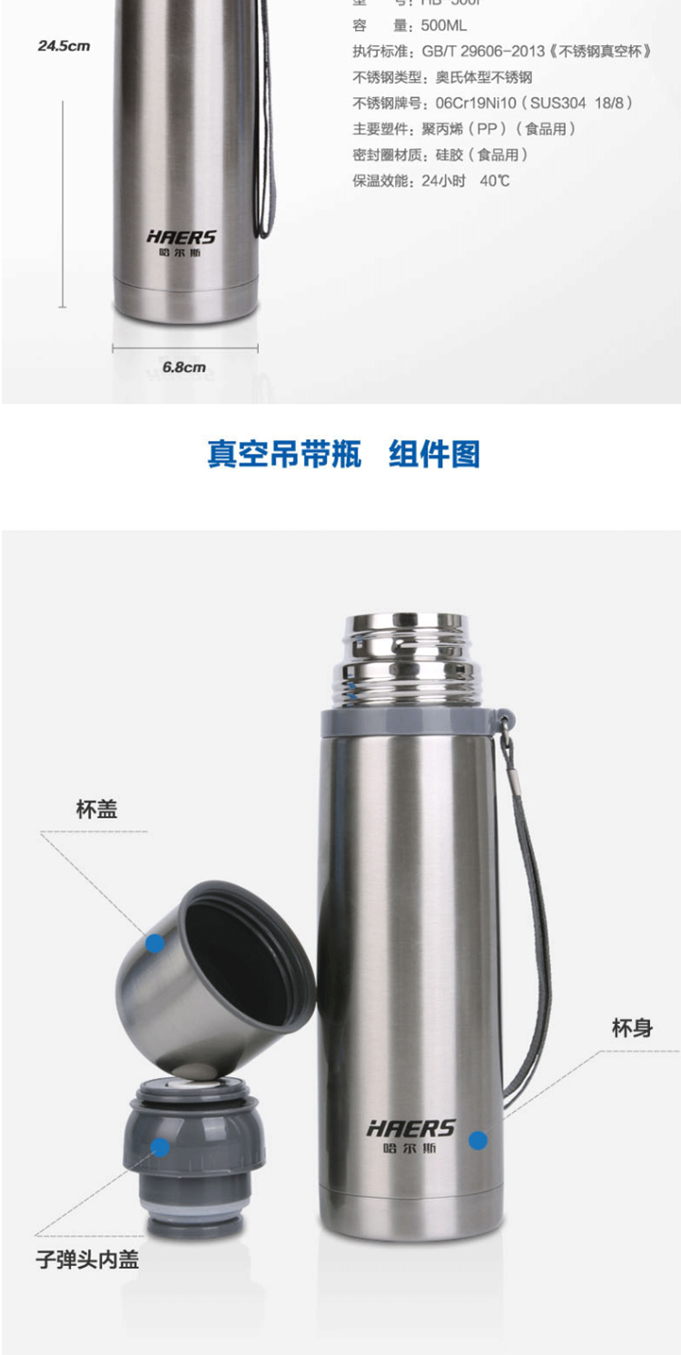 商品名称: 哈尔斯 500-29 500ml 便携提绳真空水杯(单位:个)
